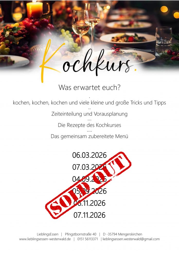 auch im Jahr 2026 werden wir unterschiedliche Kochkurse anbieten.