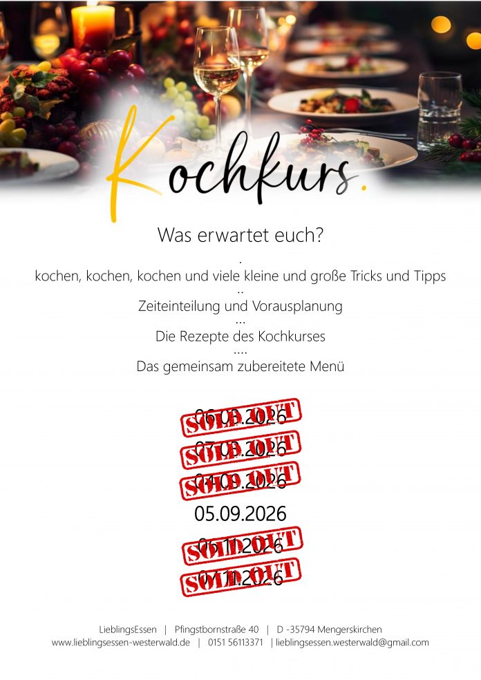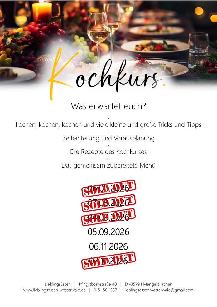 auch im Jahr 2026 werden wir unterschiedliche Kochkurse anbieten.